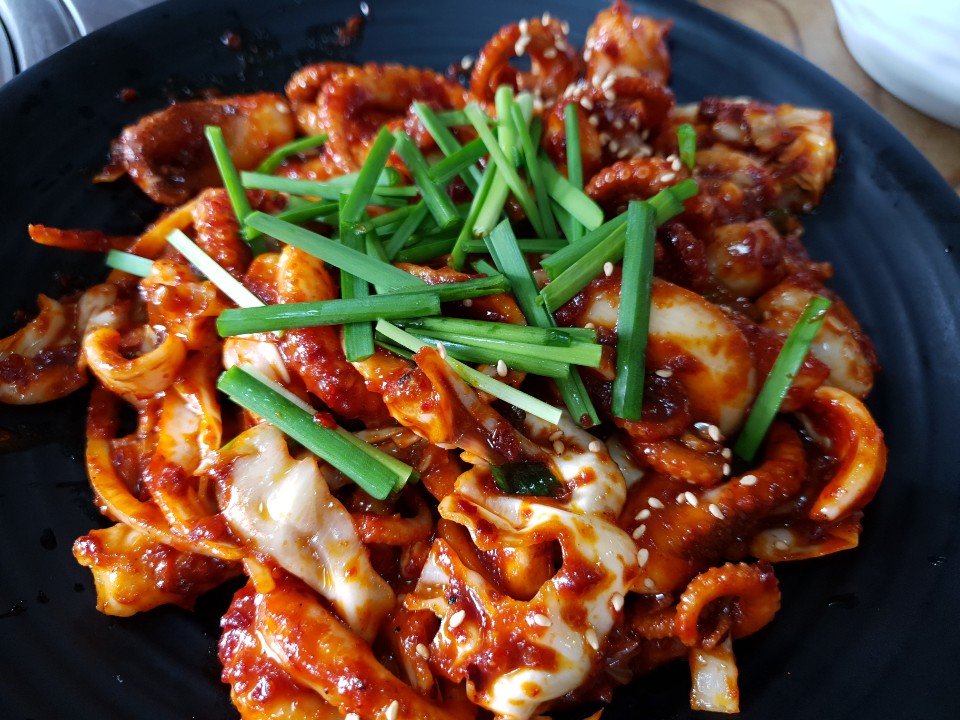 직화 쭈꾸미 볶음 2인분 4명이서 먹을때는 하나로 통일해서 4인분 먹는 것 보다는 2개씩 나눠서 두가지 메뉴를 먹는 걸 추천드려요. 썩어서도 주문이 가능하고 따로따로 주문이 가능합니다. 원래 오늘 쭈꾸미 낚시를 하러 갔었어야 하는데... 태풍 미탁이 올라와서 취소된슬픔을.. 복사꽃피는집에서 쭈꾸미를 먹는걸로 해결...