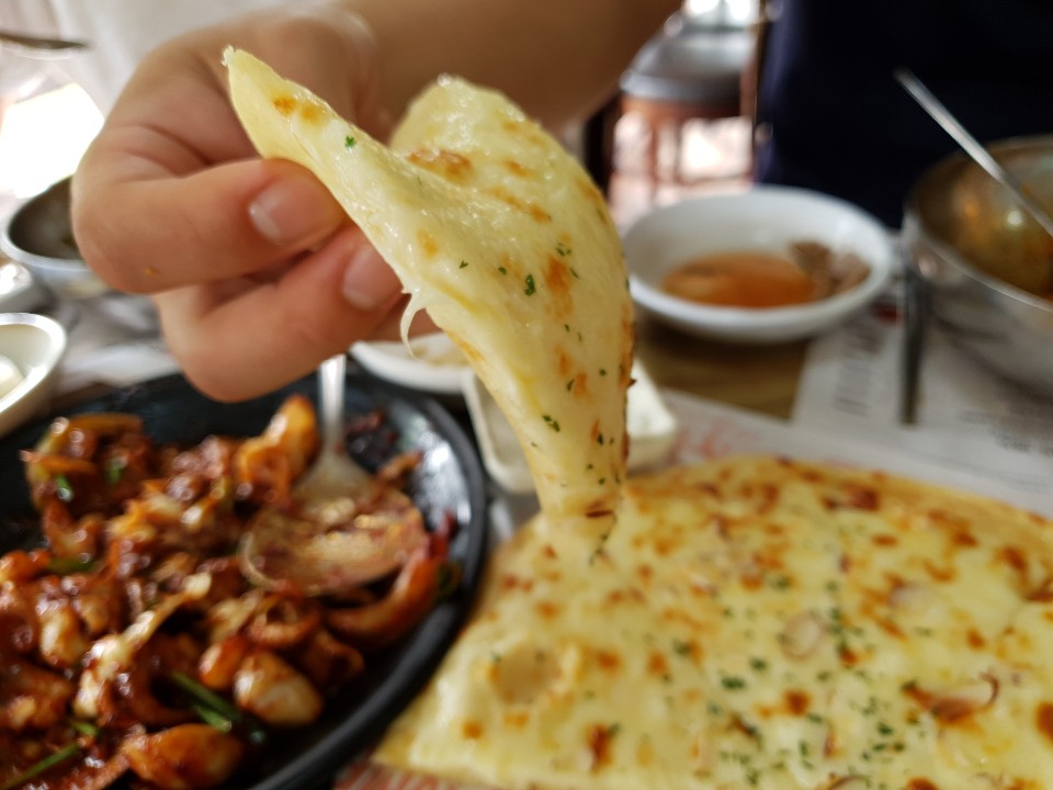 2인이상 세트메뉴를 주문하면 화덕 고르곤졸라피자가 서비스로 나오는데요. 여기에 치즈도 듬뿍 들어가있어서 메인 메뉴 이외에도 맛있게 먹을 수 있어요.