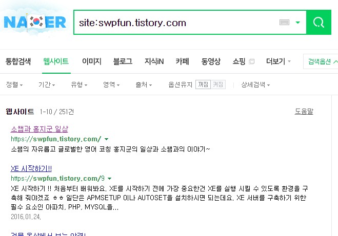 이제는 네이버 블로그에도 똑같은 글을 작성하고 외부 공유 허용을 해제하면서 글을 하나씩 옮기고 티스토리 블로그를 네이버 검색에 나오는 것을 포기하고 이제는 네이버 블로그를 따로 써서 네이버와 티스토리 블로그 2개를 동시에 운영을 해야할 것 같네요.