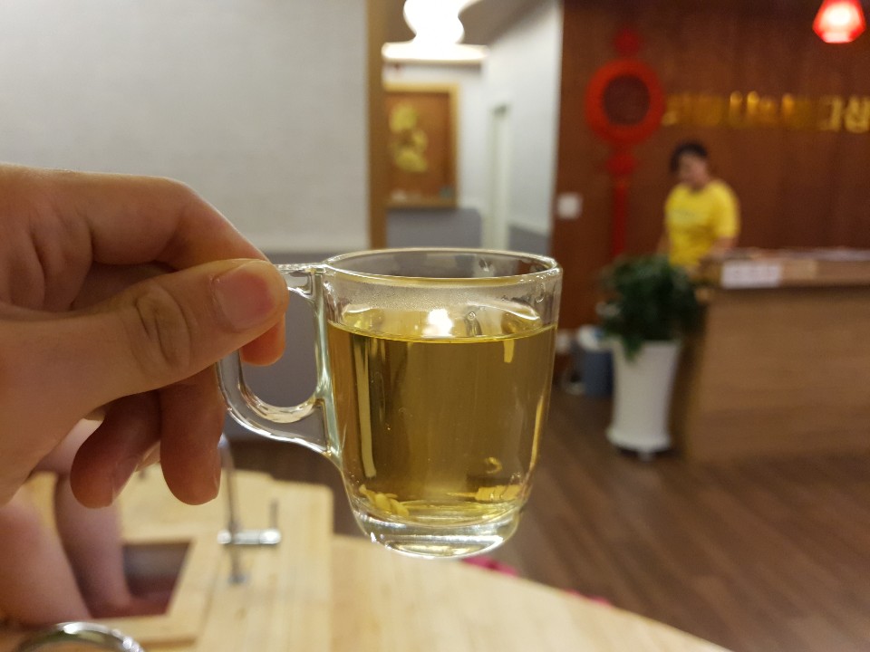 족욕탕에 발을 담그고 있는데 국화차? 대추씨차? 뭔지 모르겠지만 맛이 없는 차를 줬어요. 먹을만은 했지만 제 입맛에는.... 그닥 ... 차를 다 마시고 발에 물기를 수건으로 닦아주시는데.. 생전 처음 느껴본 경험이었어요,.