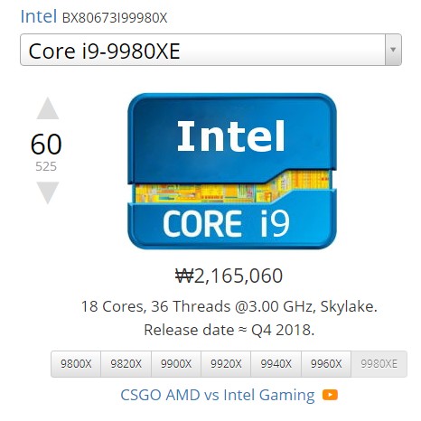 인텔의 i9-9980XE는 18코어 36쓰레드에 3.00GHz의 성능에 가격은 무려 2,000달러로 한화로 약 200만원을 넘는 엄청난 고가의 제품이지만 AMD의 3950X는 16코어 32쓰레드 3.5GHz 부트스 4.7GHz 의 성능으로 i9-9980XE와 비교했을때 단일코어의 점수가 더 높게 나왔다고 하는데 정확하게 출시가 되고 많은 정보가 있어야 하겠지만 그래도 749달러의 가격에 2,000달러 짜리와 비빈다는 것 자체가 대단한거죠..