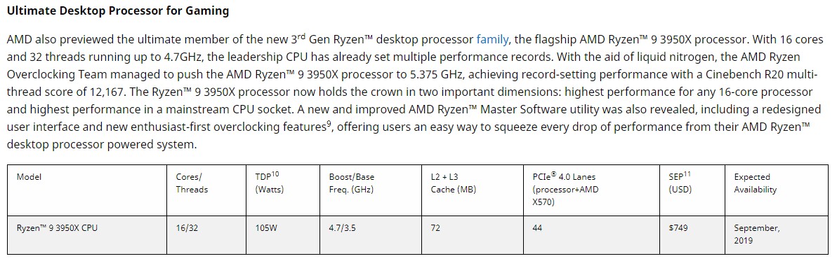 9월달에 749달러(예상)에 출시되기로 했던 AMD의 최신CPU Ryzen9 3950X의 출시가 11월달로 연기가 되었었는데 정확한 연기 사유는 잘 모르겠으나 3900X의 물량을 어느정도 소화시키고 3950X를 출시하기 위함이 아닌가 생각이됩니다.