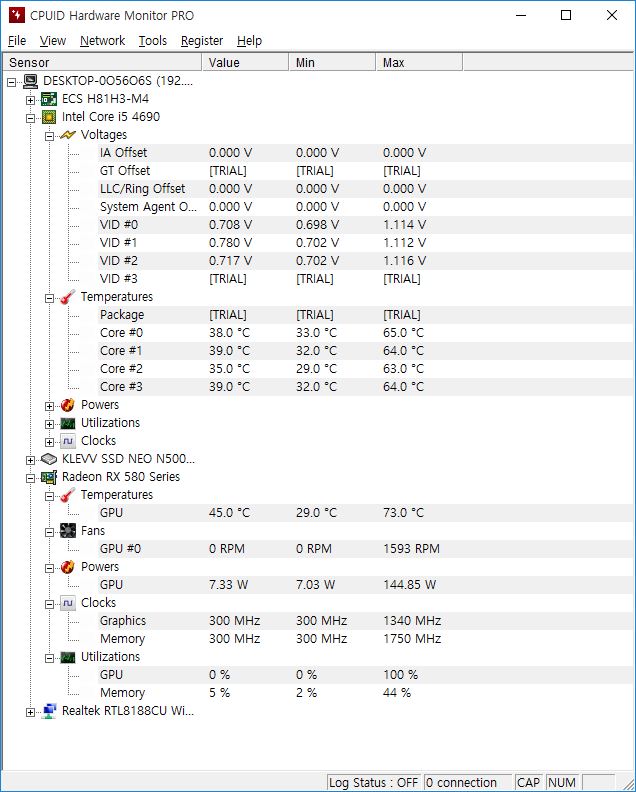 3D MARK 테스트 동안 CPU의 온도도 크게 높아지지 않았습니다. cpu온도의 Package가.. TRIAL이 떠서 정확하게 확인은 못했네요..