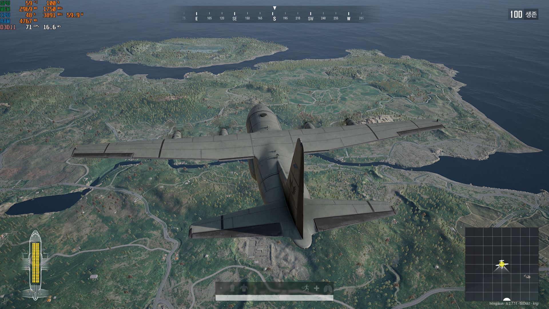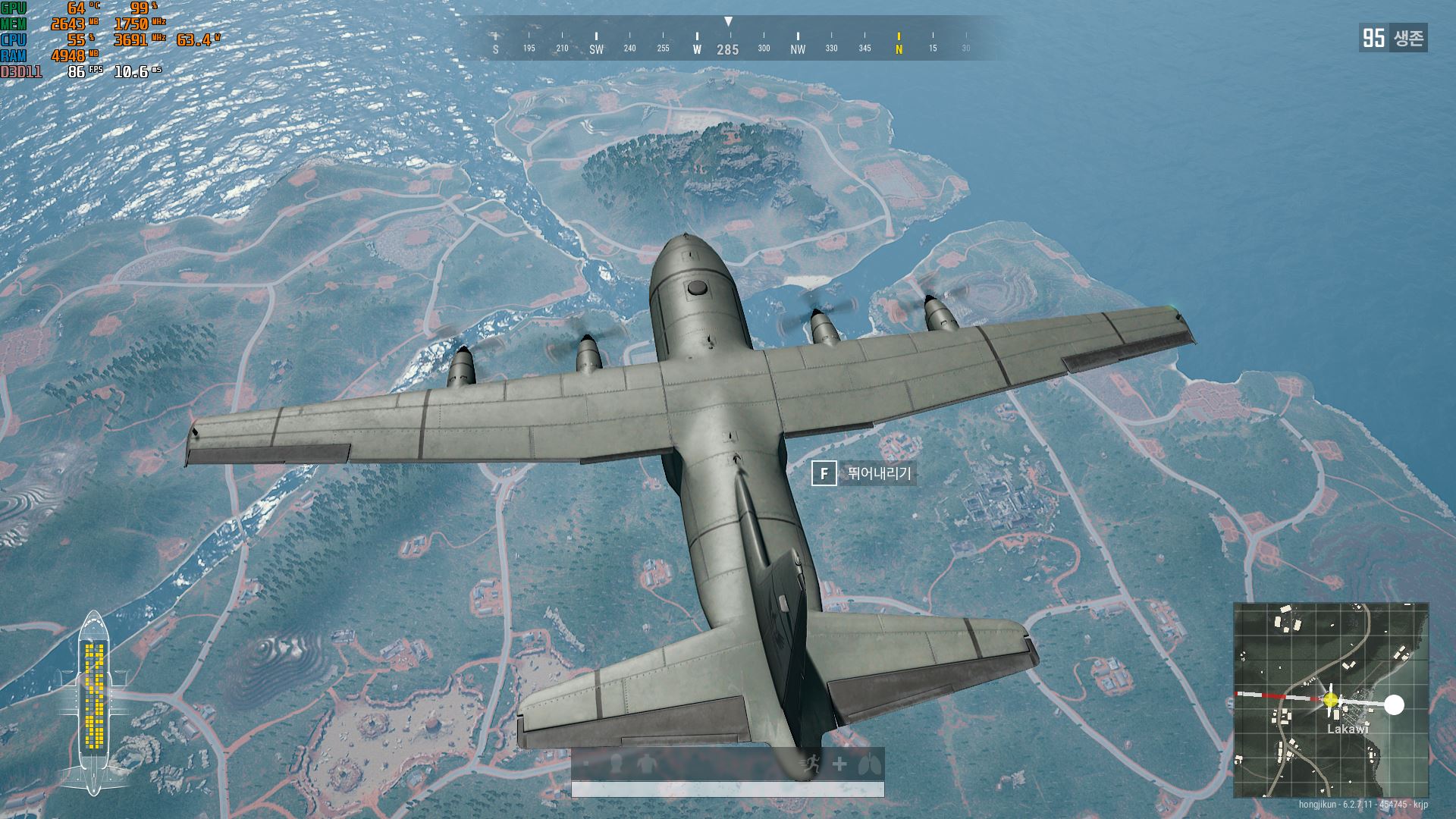 옵션을 울트라로 설정하고 게임을 플레이 했을대는 약 60프레임 정도 나왔습니다 6GB램이라 그런지 비행기에서부터 잔랙이 심해서 아쉽지만.. 그래도 게임 플레이에서는 울트라까지 올려도 게임 플레이하는데는 큰 문제없었습니다. 다만 중간중간 잔랙이 조금 있기때문에 중요한 순간에 잔랙때문에 죽거나 놓친다면 정말 아쉬울 것 같네요.