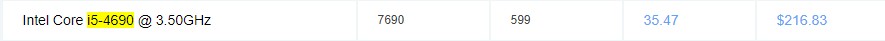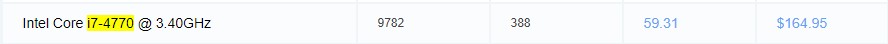 i5-4690의 등수는 599위 i7-4770의 등수는 388위 입니다. CPU MARK 점수도 i7-4770은 9782점 i5-4690 7690점으로 2,090점 차이가 납니다. 옆에 가격은 i5-4690이 더 비싼걸로 나와있지만 국내에서는 4690이 더 저렴합니다.