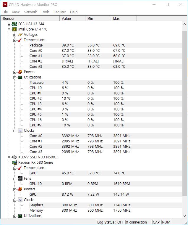 테스트 전과 후의 CPU온도차이를 보면 70도 정도까지 올라가는 것 같습니다. 온도는 i5-4690보다 살짝 높게 나왔네요.
