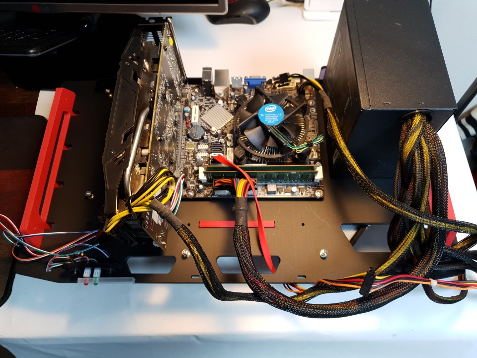 오픈형 케이스 답게 ITX,M-ATX,FUll-ATX 메인보드가 적용이 가능하고 그래픽카드도 2팬 3팬 크키에 상관없이 장착해서 사용할 수 있다는 장점이 있습니다. 파워서플라이도 같이 옆면에 장착해 컴퓨터의 모든 기기를 한눈에 들여다볼 수 있습니다. DOMA F1의 아쉬운 점은 그래픽카드 지지대가 1개밖에 없다는점이 조금 아쉽네요... 그밖에도 오픈되어 있다보니 선풍기나 외부온도를 낮춰줌으로써 시스템쿨링이 가능하고 LED뽕에 빠져있다면 LED를 마음껏 감상할 수 있다는 점입니다.