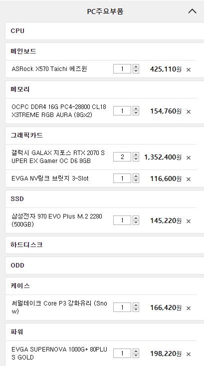 아직 다 구매하지 않았습니다.. 그래픽카드랑 케이스를 먼저 구매할생각인데 아마도 이번주쯤에 구매를 하지 않을까 생각이되네요~ 그리고 아직 블랙프라이데이가 기다리고 있기때문에 램이나 M.2 SSD는 블프에 싸게 나오면 구매할려고 해요~