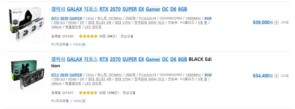 그래픽카드는 갤럭시의 지포스 RTX 2070 SUPER EX Gamer OC D6 8GB * 2개를 구매해서 NVLINK를 사용할려고 준비중입니다. RTX2080ti의 한개의 가격이 어마무시한게..