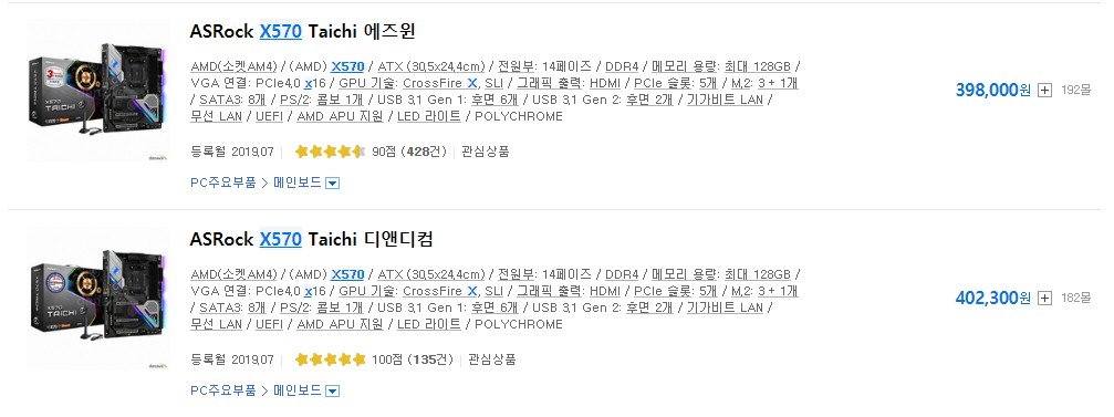 메인보드는 감성과함께 전원부도 짱짱한 ASRock(에즈락) X570 Taichi타이치 를 구매할려고 하고 있습니다.