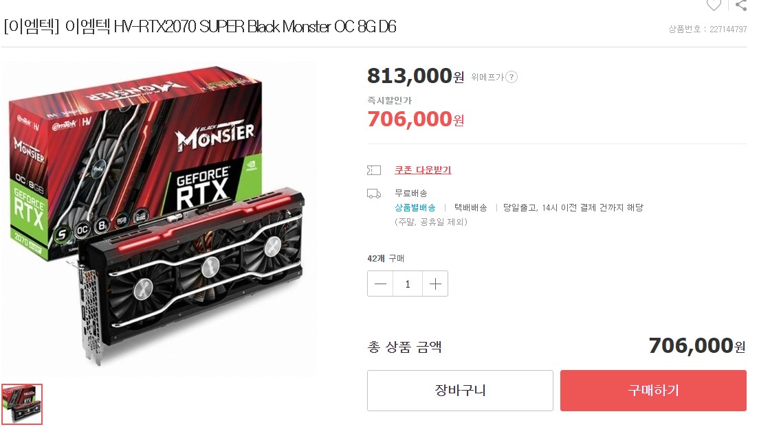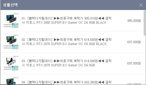 | 겔럭시 RTX 2070 SUPER | 801,000원 | 697,000원 | 688,860원 | 8,140원 | 41,330원 |