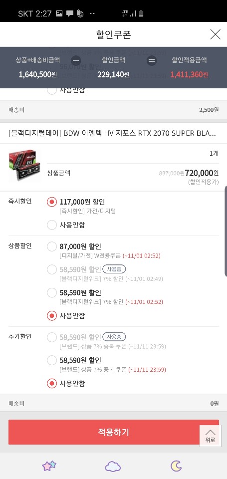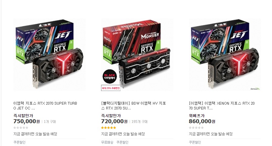 [블랙디지털데이] BDW 이엠텍 HV 지포스 RTX 2070 SUPER BLACK MONSTER OC D6 8G 제품을 구매할려고 하는데.. 여기서 불편한건 즉시할인가 720,000만원 클릭해서 들어가면 판매가는 837,000원에 올라와있습니다.