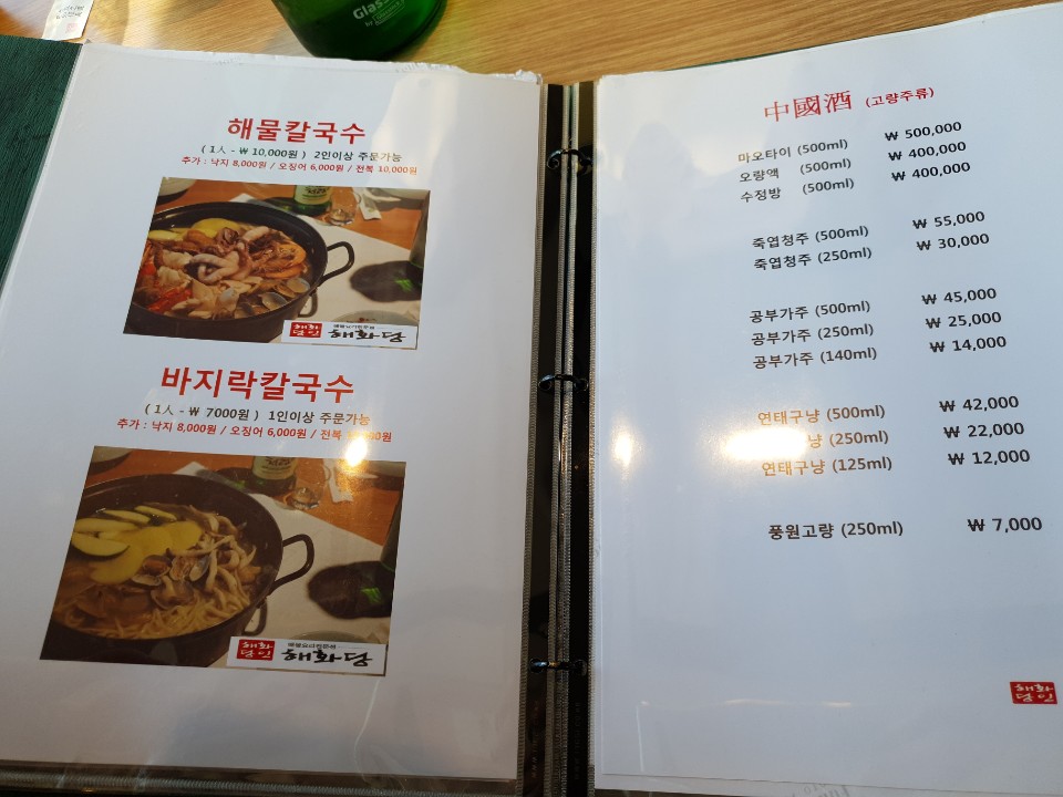 해화당은 해물요리 전문점이라서 꽃게탕 이외에도 아구탕(지리) 해물탕, 해물찜, 아구찜, 해물칼국수, 바지락칼국수 등등 다양한 해산물 메뉴가 있었습니다.