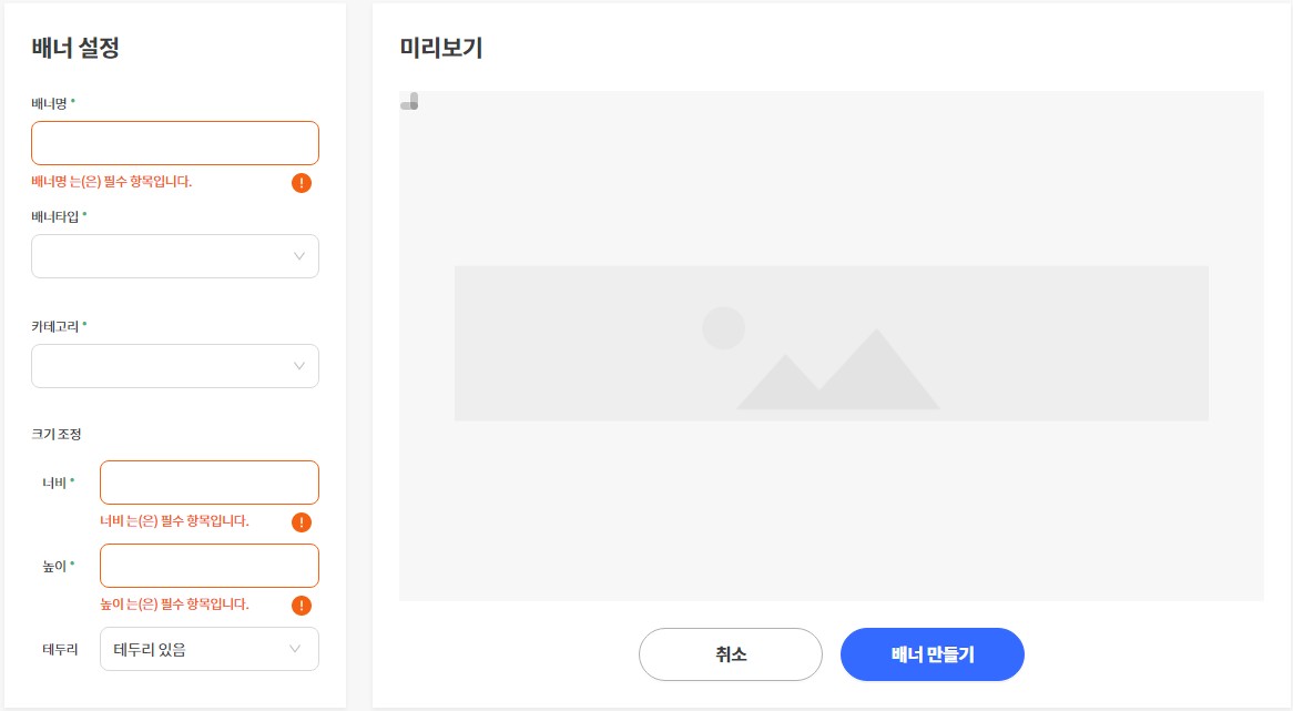 배너명 : 원하는 배너명을 입력