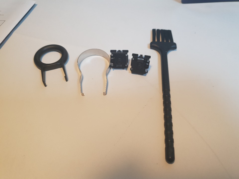 구성품 - 키보드, 오테뮤 축 2개, 리무버, 청소솔, 설명서