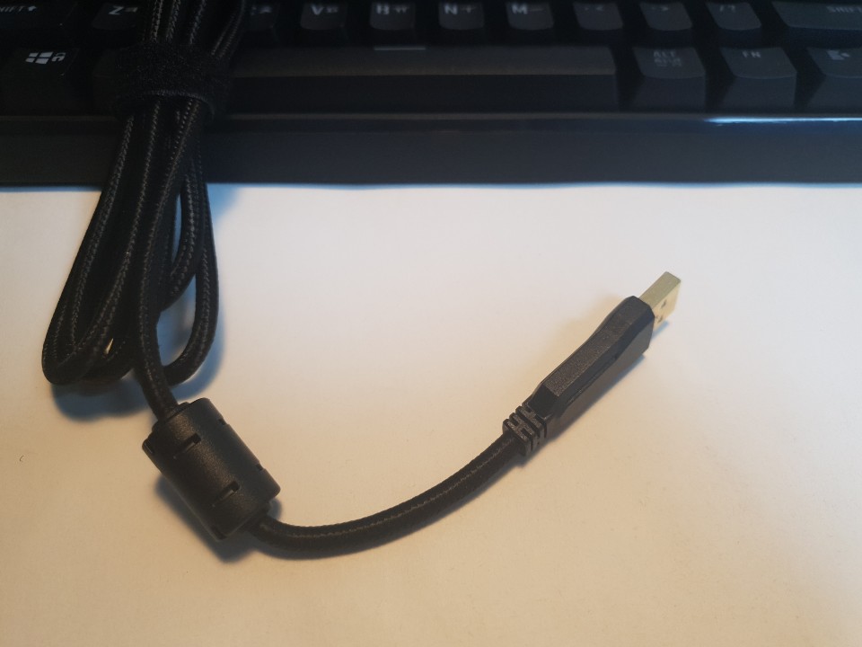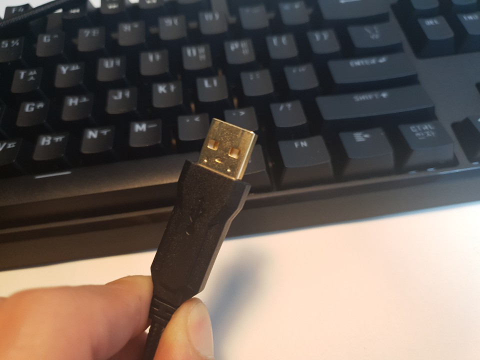 케이블 또한 패브릭 소재로 만들어져 있어 줄꼬임방지와 단선위험도 적고 USB는 2.0 금도금으로 되어있어 부식을 방지까지 이정도면 저가형 기계식키보드로 괜찮은 거 아닌가 하는 느낌이 드네요.