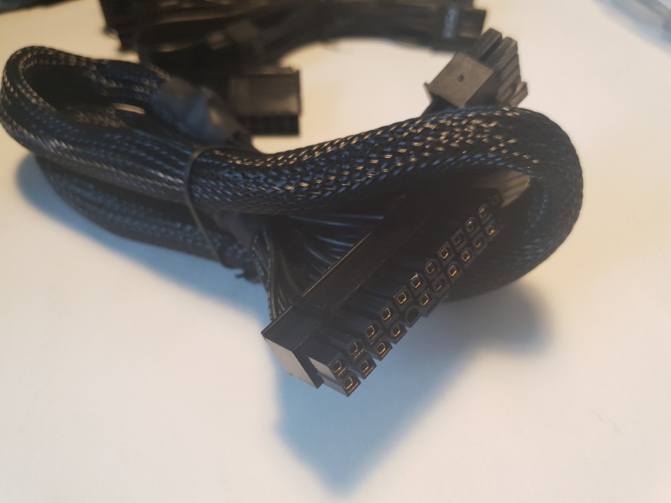 커넥터 구성은 ATX Cable 24pin 1개, EPS / ATX 12V 4+4 Pin 2개, PCI-E 6+2 Pin 2쌍 3개, SATA * 4쌍 2개 1개마다 길이가 다름, SATA 2쌍 1개, Molex 3쌍 1개, Molex 2쌍 1개,Molex to 3.3 SATA 1개의 구성으로 되어있습니다. 모듈러인 만큼 필요한만큼의 커넥터를 연결해 사용할 수 있어 많은 커넥터를 사용하지 않는다면 더 깔끔하게 선정리가 가능합니다