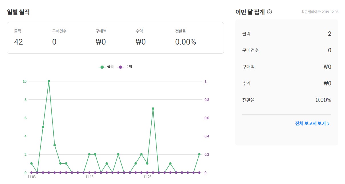 쿠팡 파트너스또한 등록해서 사용중이기는 하지만 파트너스 등록하고 몇번써보고 출장때문에 글쓴게 많이 없어서 큰 기대는 없었습니다. 12월달에는 쿠팡 파트너스활동도 하면서 수익금이 얼마나 나올지 내년 1월에 12월 결산을 하면서 제대로 한번 작성해보도록 하겠습니다.