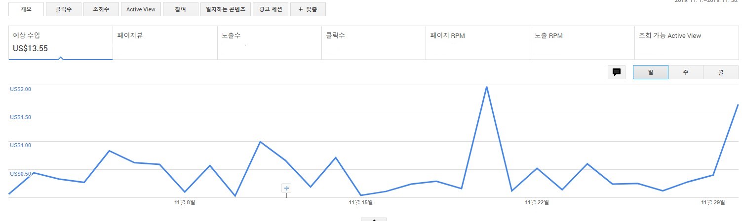 2019년 11월 티스토리 방문자수 및 수익 기록(공개) 애드센스 11월 결산