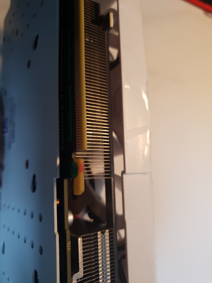 90mm의 트리플 쿨러 모델이기에 294mm의 그래픽카드 크기로 무게감이 있어 라이저케이블을 이용해 수직으로 설치하는경우가 아니라면 지지대를 별도로 구매하거나 직접 만들어줘야합니다.. 제가 사용하고 있는 케이스는 써멀테이크 P3로 라이저케이블을 이용해서 별도의 지지대 없이 사용할 수 있었습니다.