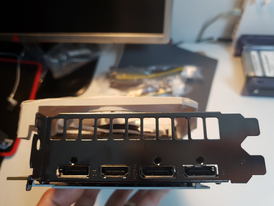 포트는 DP포트 3개 HDMI포트 1개로 연결이 가능합니다. DP포트는 1.4 HDMI 2.0 포트 지원에 두깨 22mm의 초대형 히트싱크와 25CM의 롱 히트파이프 3개로 그래픽카드의 두깨감도 조금 느껴집니다.