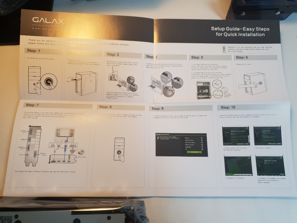 그래픽카드는 정전기방지 비닐에 잘 포장되어고 설치가이드는 잠깐 한번 열어보고 ~ 상자속으로... 봉인..