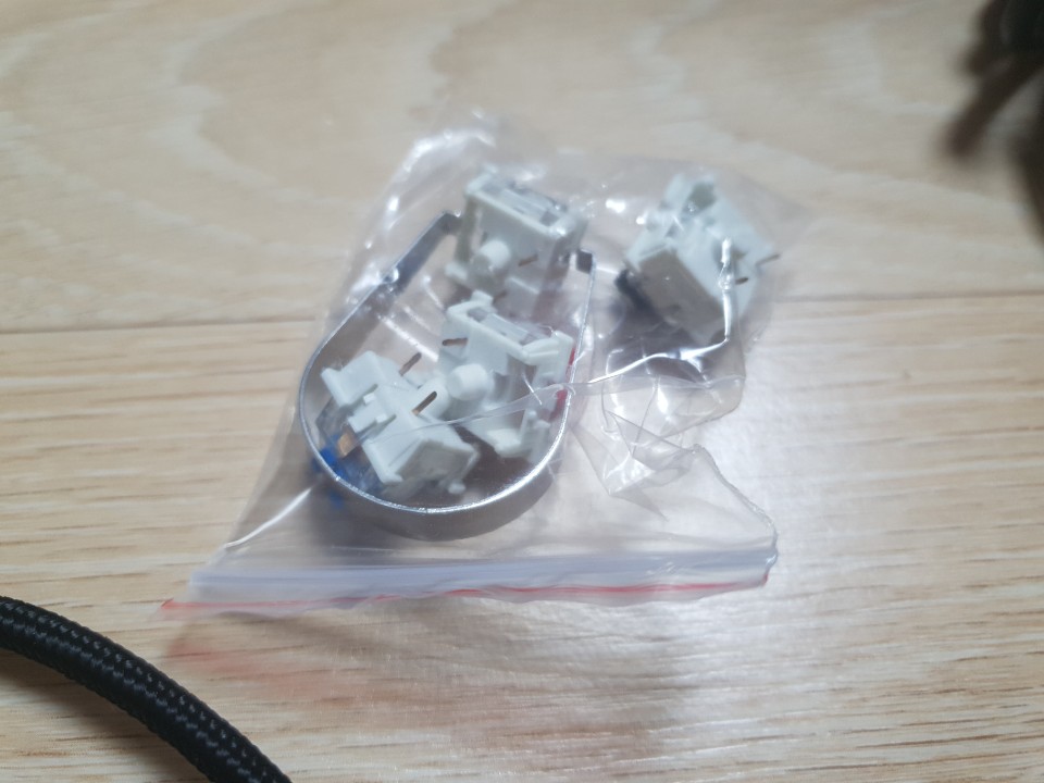 처음에 구성품에 플라스틱으로 된 키캡 리무버가 안보여서 조금 당황했는데 키보드의 뒷쪽에 부착되어있습니다.