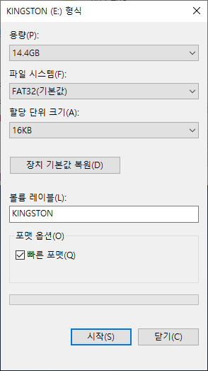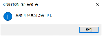 오래 걸리지 않고 포맷이 완료되었습니다.