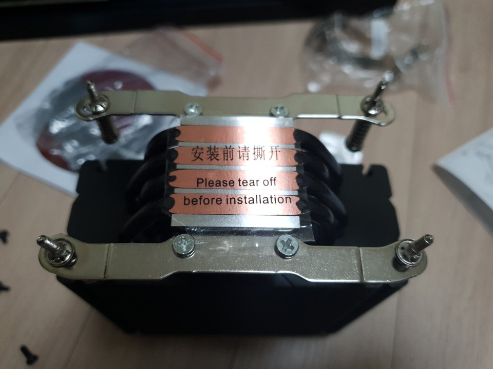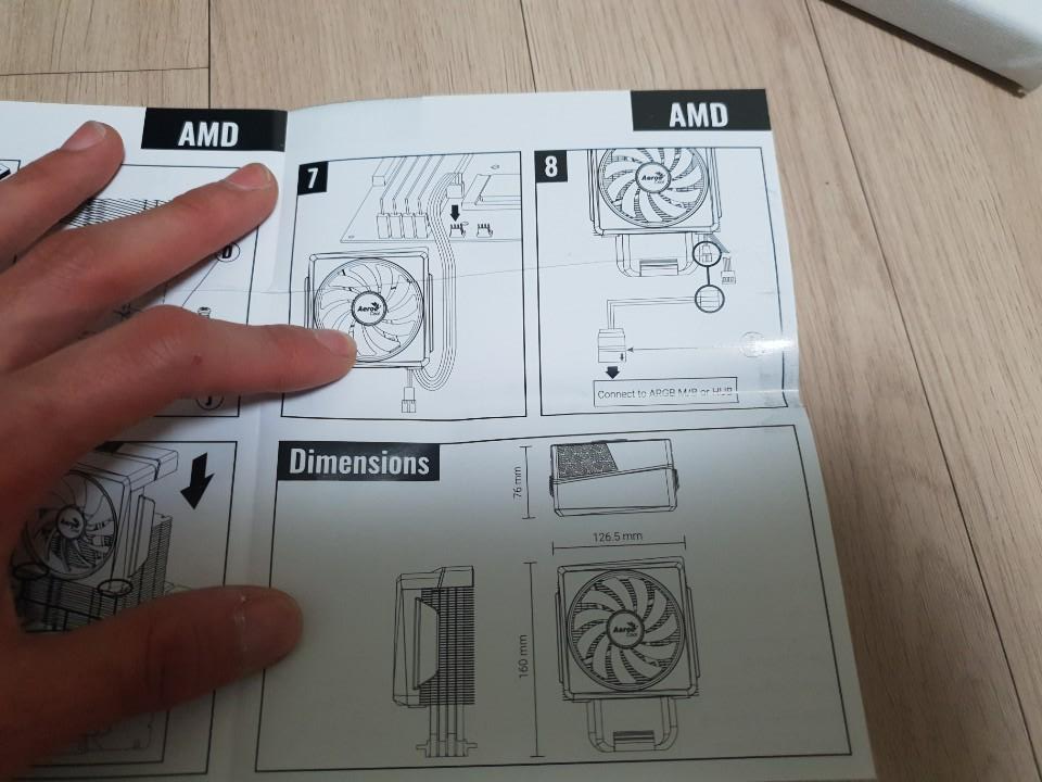 H : 160mm L : 126.5mm, W : 76mm 크기에 무게감이 있고 조립은 설명서에 따라서 쉽게 조립할 수 있지만 마지막 서멀 그리스 도포후 메인보드에 부착시켜 나사 조립을 할때는 다른 공랭쿨러들과 마찬가지로 나사조립이 어려웠습니다.