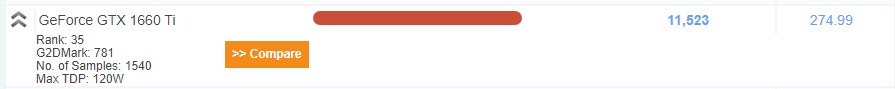그래픽카드 가성비 제품을 추천해주기 위해서 GTX 1660TI를 선택하게 되었습니다. GPU 벤치마크 사이트에서 검색해 보면 GTX 1070의 가격은 519.99달러에 랭크는 39위 입니다. 벤치 점수도 11,378점이나오는데 반면 GTX 1660Ti는 GTX 1070보다 절반정도 저렴한 274.99달러 하지만 랭크는 35위로 GTX 1070 보다는 높습니다.