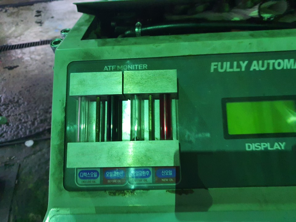 미션오일 교체도 뭔갈 뜯어내고 에어로 엄청 깨끗하게 만들어 둔 다음에 석류색의 미션오일을 오른쪽 사진의 기계로 넣어주 더라고요.. 신기하네요..