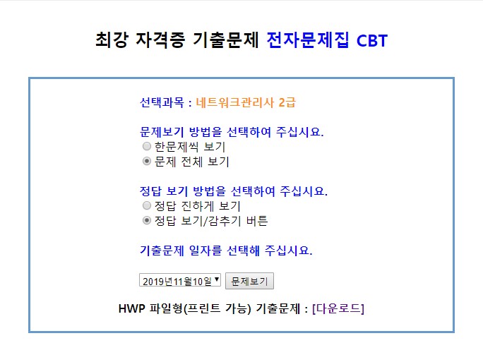 또한 이전에 출제되었던 기출문제를 한글파일(HWP)로 다운로드가 가능해서 공부하는 자료로 사용하기에는 좋은 자료인 것같습니다.