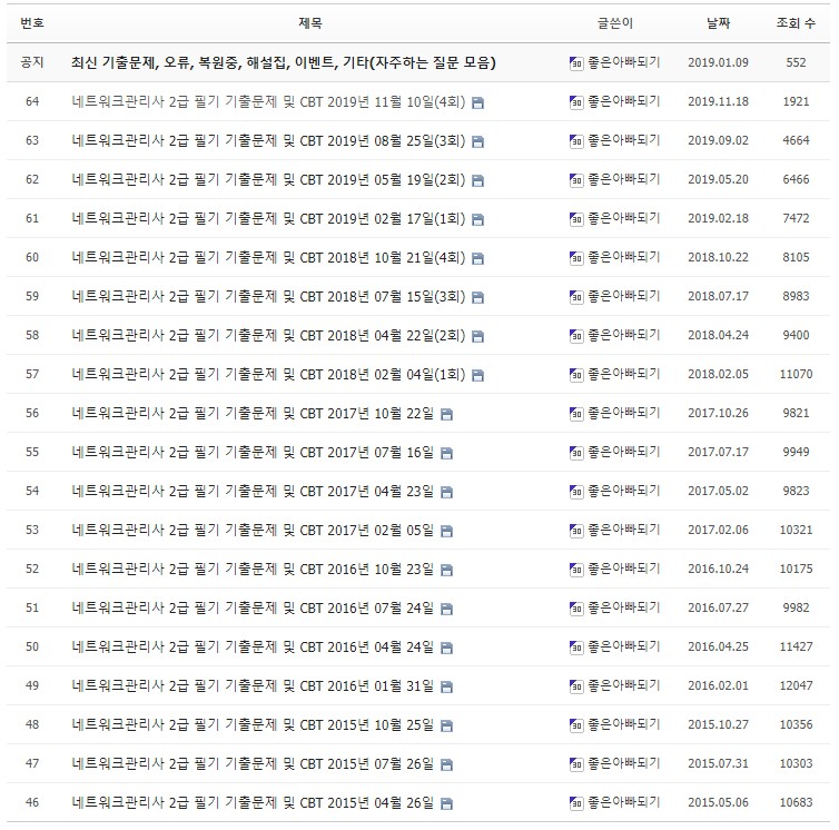 기초지식은 별로 없는데 네트워크 관리사 2급만 시험 본다 하면 네트워크 관리사 1, 2급 필기 이론책을 구매해서 보는 것도 좋지만 정보처리 산업기사 또는 정보처리 기사 필기시험을 준비하시는 분들이라면 네트워크 관리사 책보다는 그냥 정보처리 기출필기 책을 하나 구매해서 공부하고 네트워크 관리사 2급은 온라인 CBT로 기출문제를 몇번 풀어보시는 것을 추천드립니다.