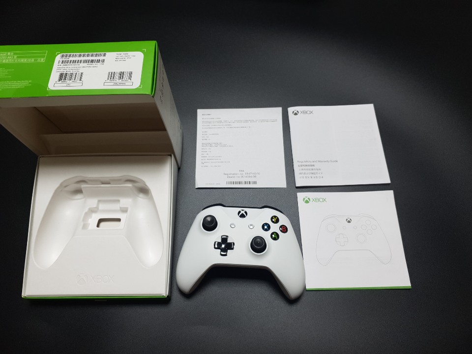 구성품으로는 XBOX ONE S 컨트롤러 설명서, 보증서로 단촐한 구성품입니다.