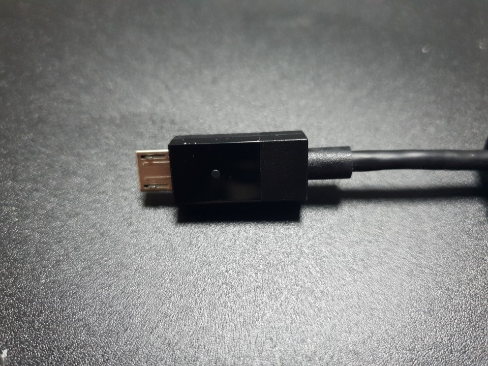XBOX ONE 정식 USB 충전케이블 답게 USB 부분에는 XBOX의 로고가 박혀있고 XBOX ONE의 패드는 마이크로 5핀의 케이블이네요. 충전기와 연결시에는 충전선에서 불이 들어오기 때문에 현재 배터리 충전의 상태를 확인할 수 있습니다.