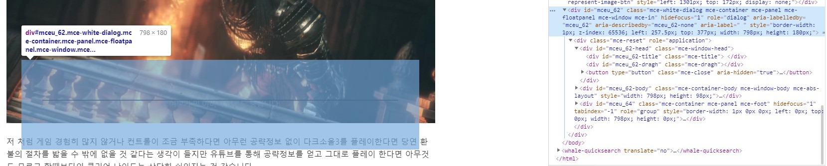 파란색으로 불이 들어오는 영역의 <DIV>를 DEL 키를 눌러 제거