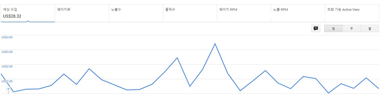티스토리 블로그에 설정되어있는 애드센스 광고의 3월 한달간의 수익금은 28.32달러 한화로 약 34,600원 정도 벌었습니다. 제 블로그에는 방문자수가 크지 않지만 그래도 이제는 제법 수익금이 조금씩 올라가고 있습니다.