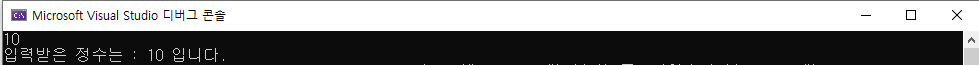 그러면 입력된 숫자와 함께 "입력받은 정수는 : (입력받은 숫자) 입니다."라고 표시되고 프로그램은 끝나게 됩니다. 코딩 을 한 순서대로 화면에 scanf로 입력을 기다리고 있고 입력이 있기 전까지 다음 줄에 있는 printf는 대기 하고 있다가 7번 줄의 scanf의 행동이 끝나고 난 뒤에 8줄의 printf가 실행 되어지는 순서입니다.