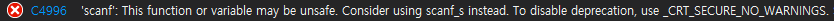 C4996에러 'scanf':This function or variable may be unsafe. Consider using scanf_s instead. To disable deprecation, use_CRT_SECURE_NO_WARNINGS라는 오류코드가 발생했다면?