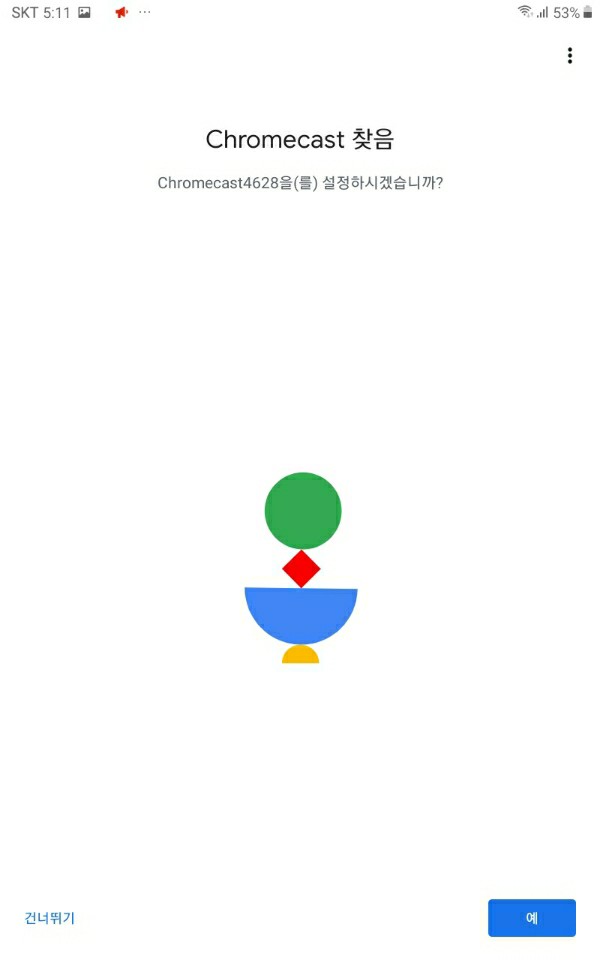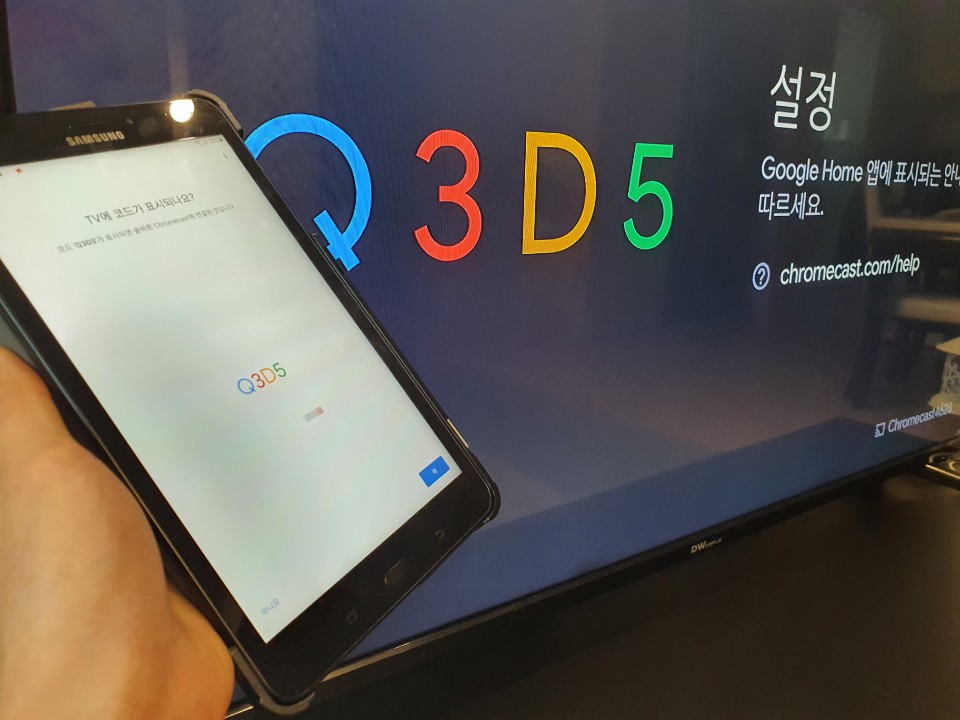google home 앱에서 기기 검색을 하고 크롬캐스트를 찾았다면 TV화면과 구글 홈 앱에서 같은 문자가 나타나는 것을 확인하면 이제 연결이 끝났습니다.