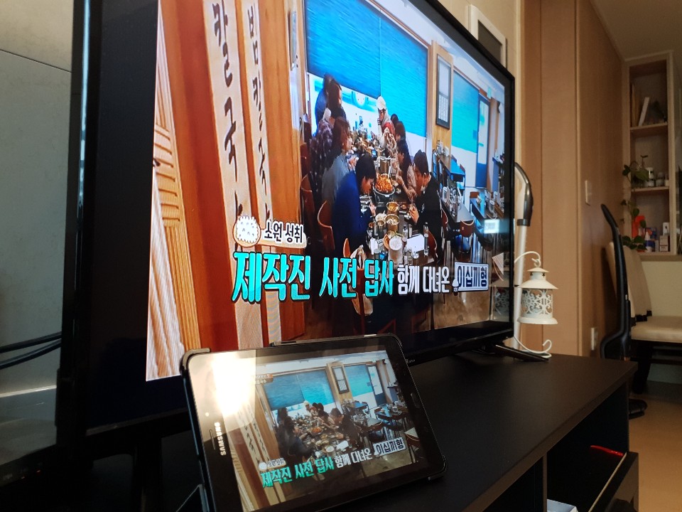 화면 미러링을 통해서 스마트폰의 화면을 그대로 볼 수 있어 작은 화면으로 게임하던 것들을 큰 화면으로 게임을 할 수 있기도 하고 (다만 렉이 있어 실시간의 급박한 게임이라면 어려움이 있음) 스마트폰으로 하던 문서 작업 ppt등도 큰 화면으로 볼 수 있습니다.