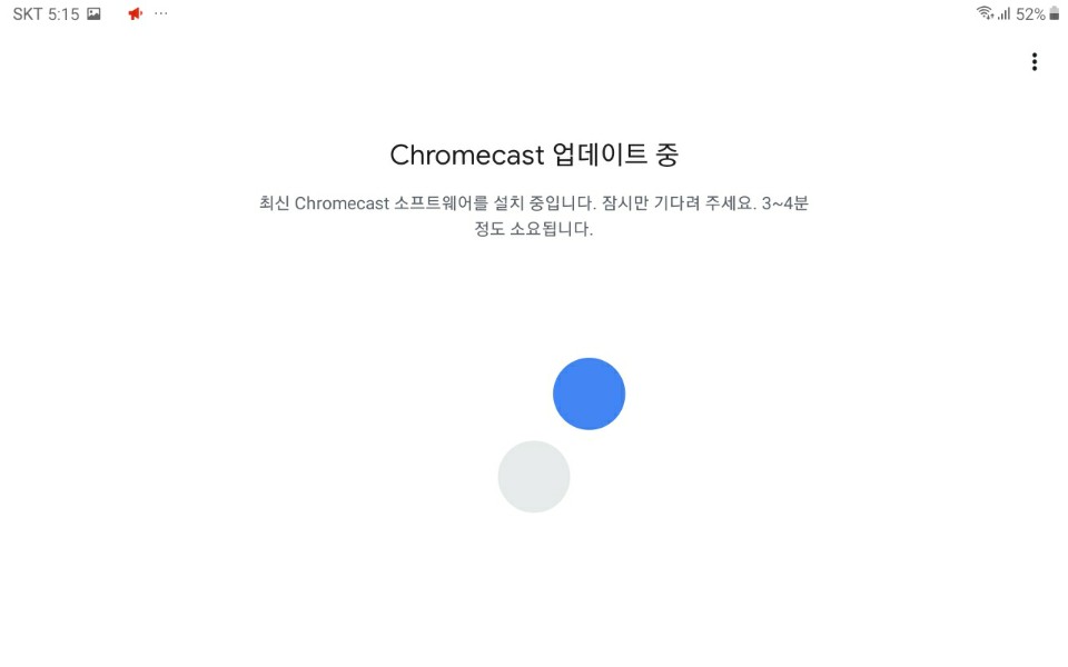 연결을 하고나면 크롬캐스트 기기를 업데이트하게 되는데 업데이트는 3~4분정도 소요가 됩니다.