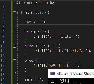 printf("a는 0입니다.");