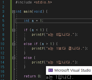 printf("a는 1보다 큽니다.");