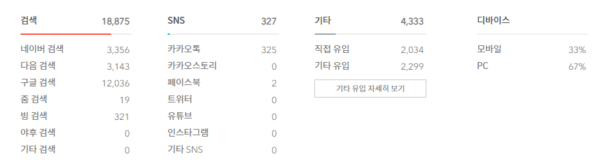 티스토리 블로그를 운영하면서 작년 9월 다음 포털사이트에 블로그 검색 재설정을 요청한뒤로 다음에서 유입되어지는 방문자수는 노출도 잘 되지 않던 네이버보다 약 2~3배정도 더 많은 유입자수를 보여줬었습니다.
