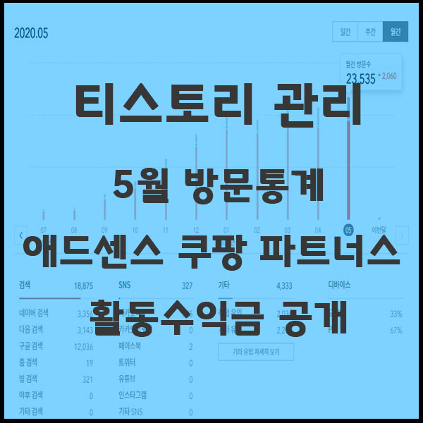 티스토리 블로그 2020년 5월 방문자 수, 애드센스 수익금 공개