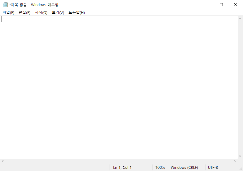 메모장을 실행시켜 봅니다~ 아무것도 없는 메모장에 지난 시간에 공부한 기본 구조를 그대로 작성을 한번 해보시면됩니다.