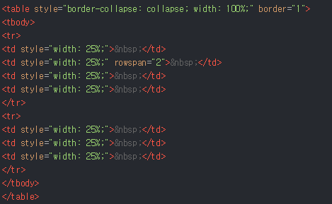 세로 병합은 rowspan 속성을 사용합니다. rowspan ="n" 몇칸을 병합할 것이냐!
