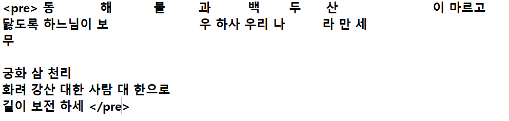 위에서 봤던 <p>태그를 <pre>태그로 변경한뒤에 결과는 어떻게 바뀔까?