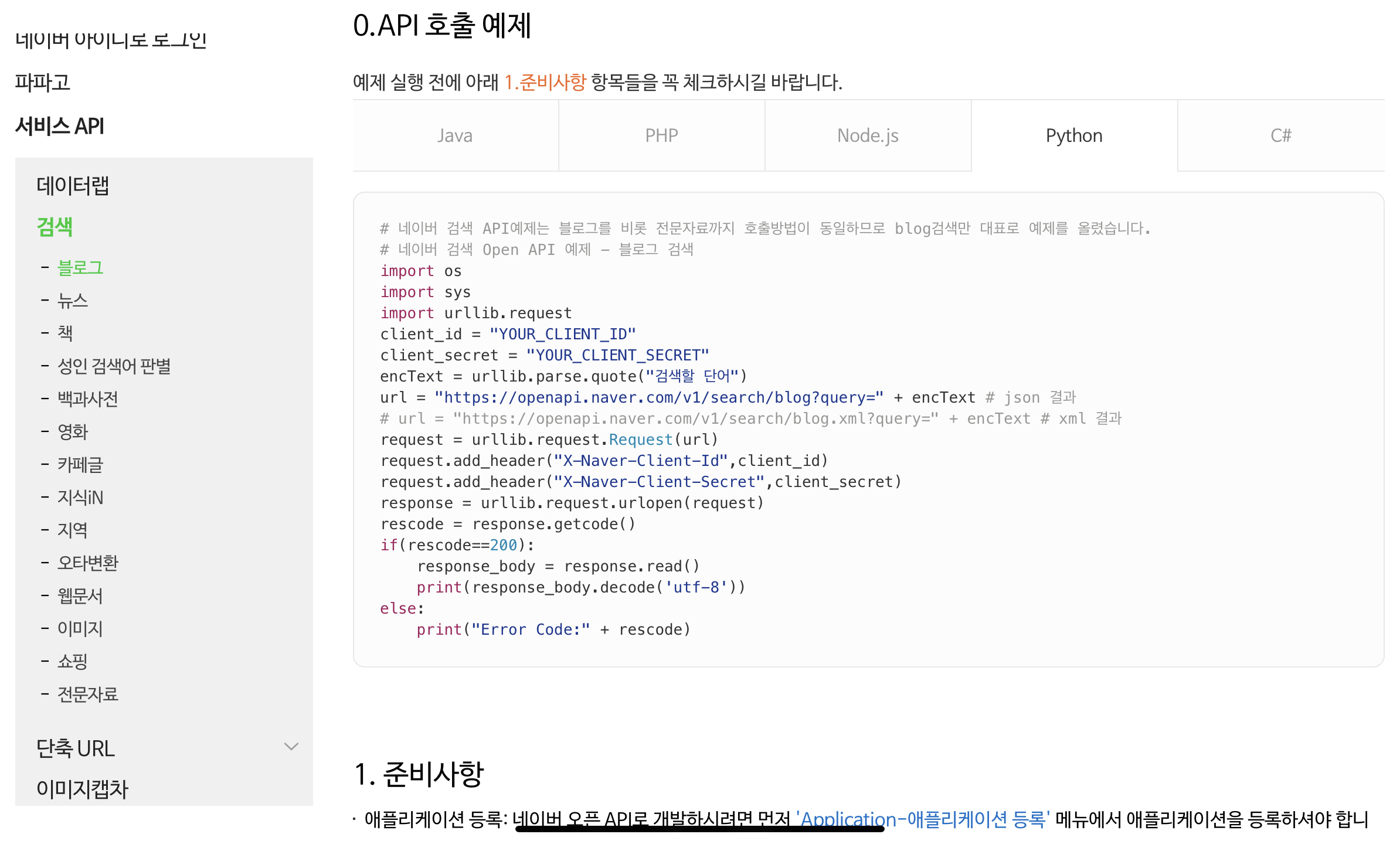 검색 API 블로그 검색 개발가이드
